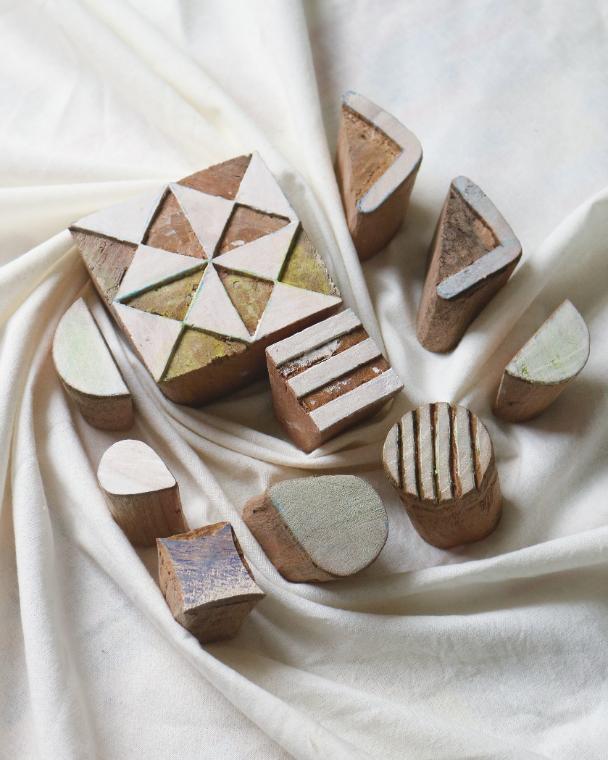 Each block is uniquely carved from natural wood and features beautiful geometric and textured patterns, perfect for printing on fabric, paper, or clay.