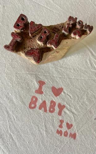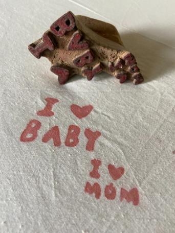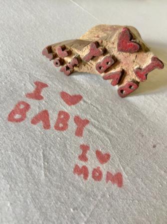 Handmade Wooden Block Stamp – I ❤️ Baby / I ❤️ Mom